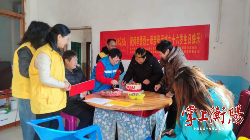 ▲黎凤兰带领微阳公益协会的志愿者们为烈士母亲庆生。